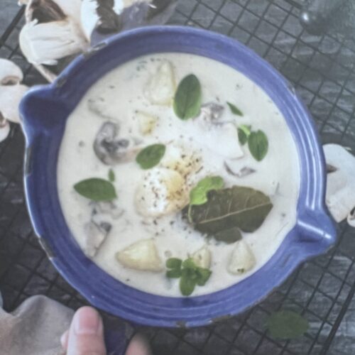 - Z cibule , múky a oleja pripravíme svetlú zápražku, ktorú zalejeme mliekom podľa potreby a pridáme do polievky.